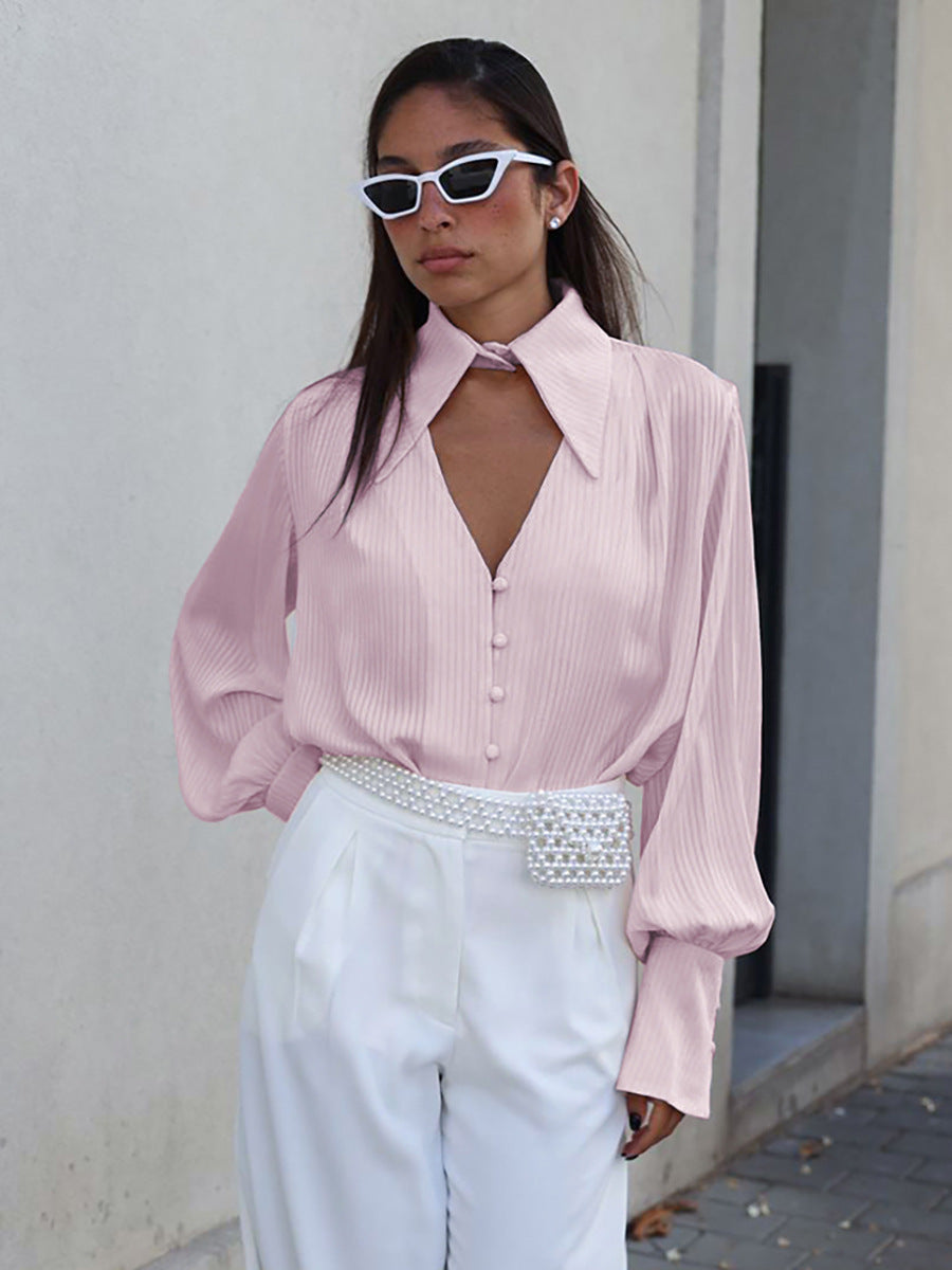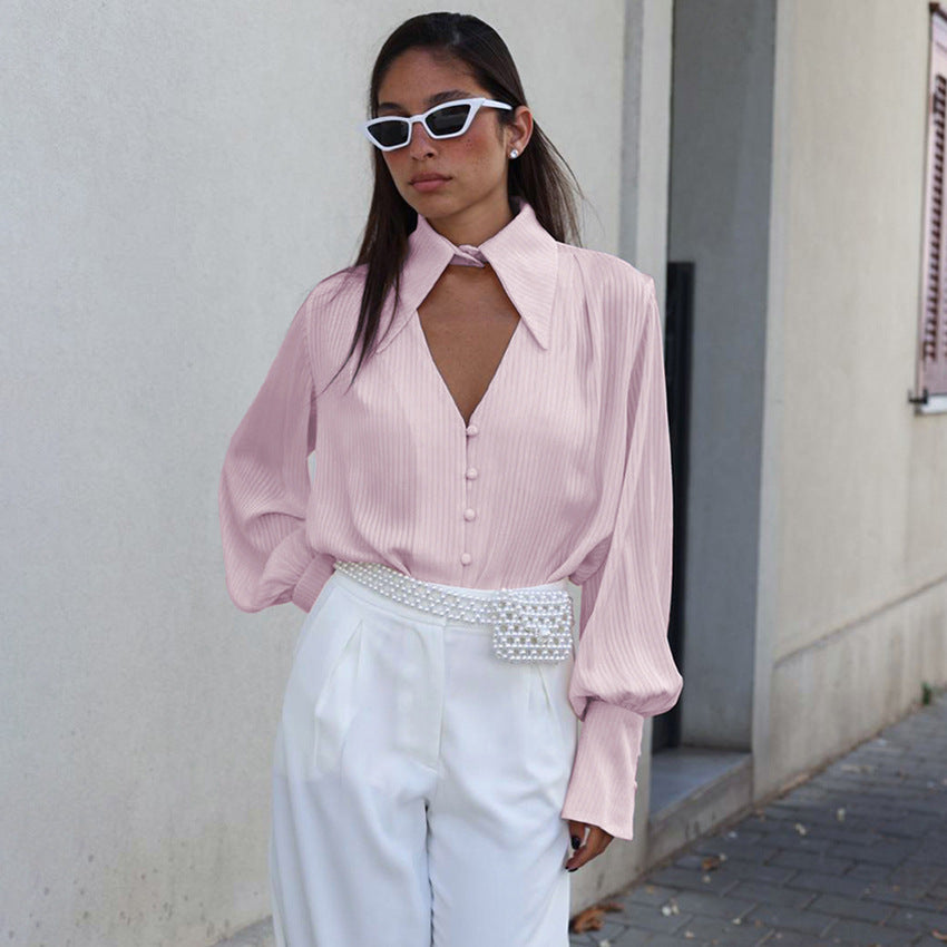 Werten Sie Ihre Garderobe mit diesem stilvollen, luxuriösen Langarmhemd mit seidigem Revers von Bae auf. Dieses stilvolle Stück ist aus hochwertigem Material mit aufwendigen Details gefertigt und verleiht jedem Ensemble einen zeitlosen Hauch von Eleganz. Seine schlanke Silhouette und die Guckguck-Truhe sorgen für einen unverwechselbaren Look mit einem Hauch von Eleganz.