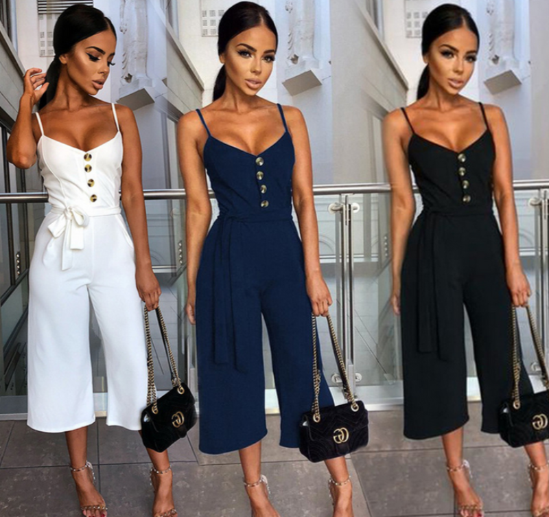 Mit diesem schicken Strampler in Rouge, Schwarz, Blau oder Weiß werden Sie alle Blicke auf sich ziehen.