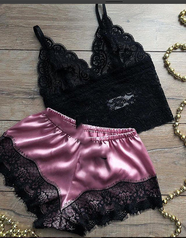 Dessous-Set aus Spitze und Satin, Bralette und Shorts (4 Farben)