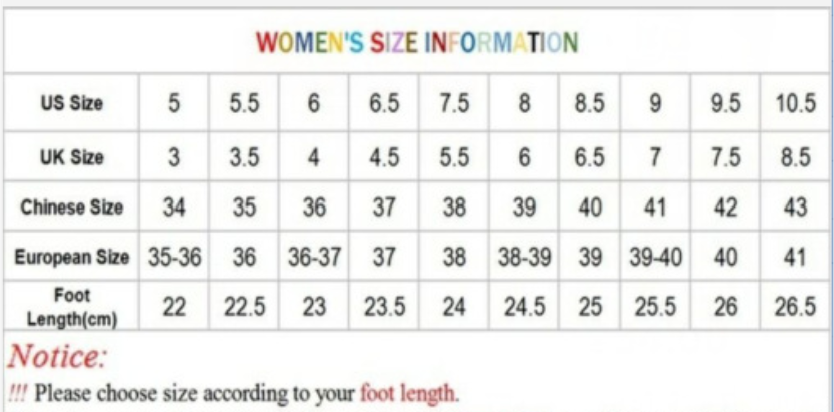Umrechnungsgrößentabelle für US-Damen