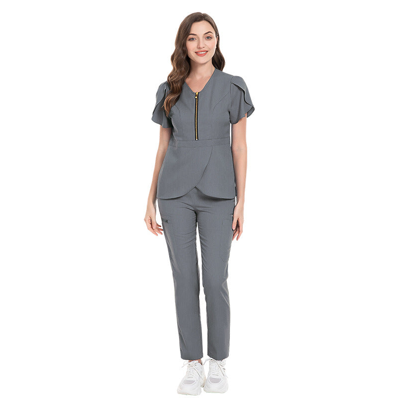 Die medizinischen OP-Kleider mit Reißverschluss für Damen mit Rosenblütenärmeln eignen sich perfekt für medizinisches Fachpersonal und verfügen über feuchtigkeitsableitendes Material, damit Sie sich den ganzen Tag über kühl und wohl fühlen. Durch den Reißverschluss und die Rosenblütenärmel sorgen diese OP-Kleider außerdem für einen sicheren Sitz.