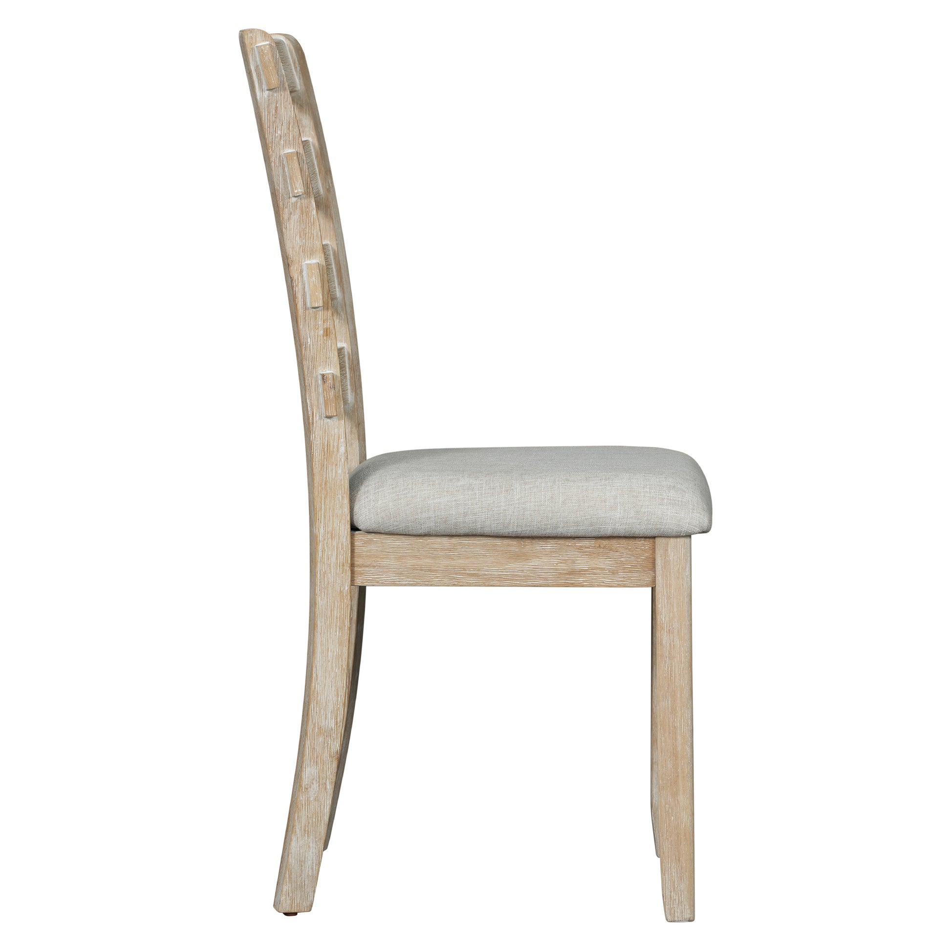 Juego de mesa de comedor de madera de 6 piezas con hermoso patrón de vetas de madera, tablero de chapa de madera maciza y cojín suave ( lavado de madera natural )