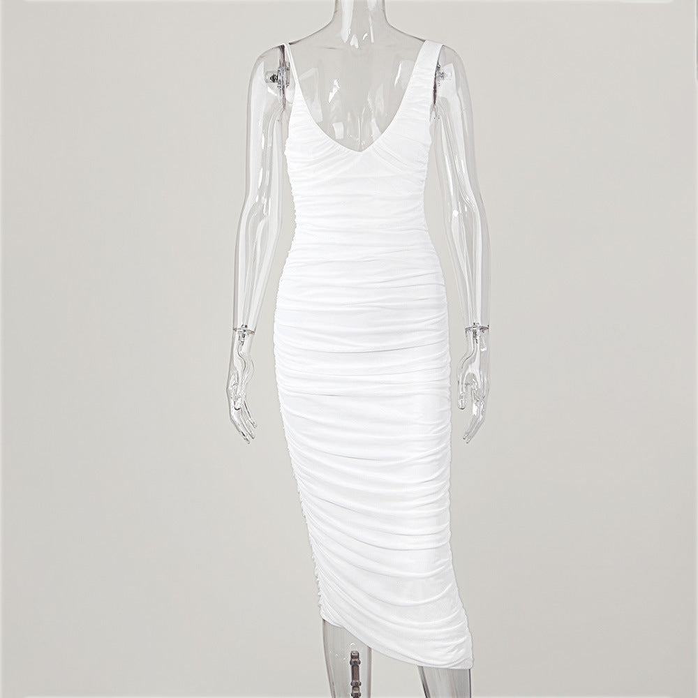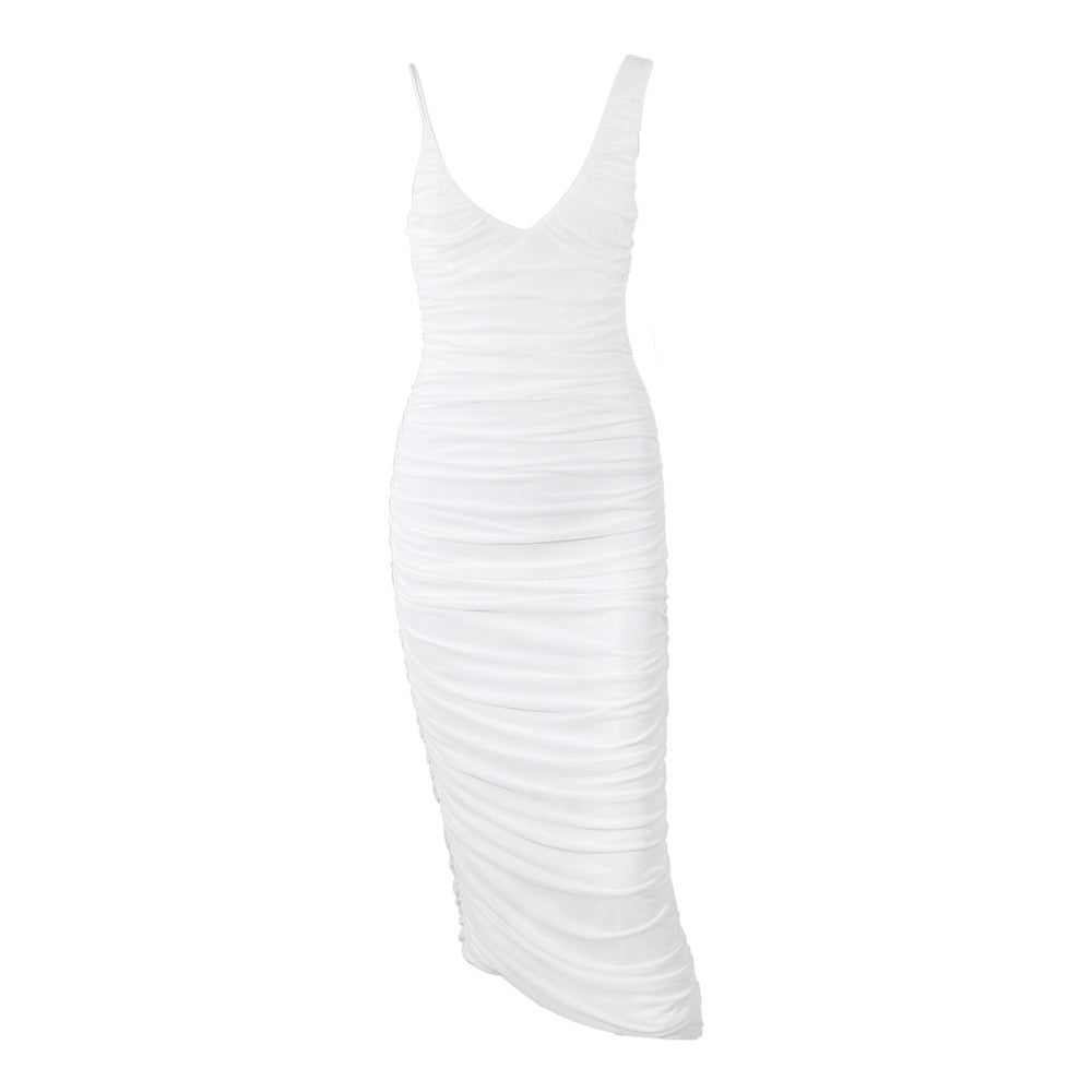¡Los tirantes únicos y los dobladillos asimétricos le dan a este vestido asimétrico con pliegues Angel un toque inesperado!