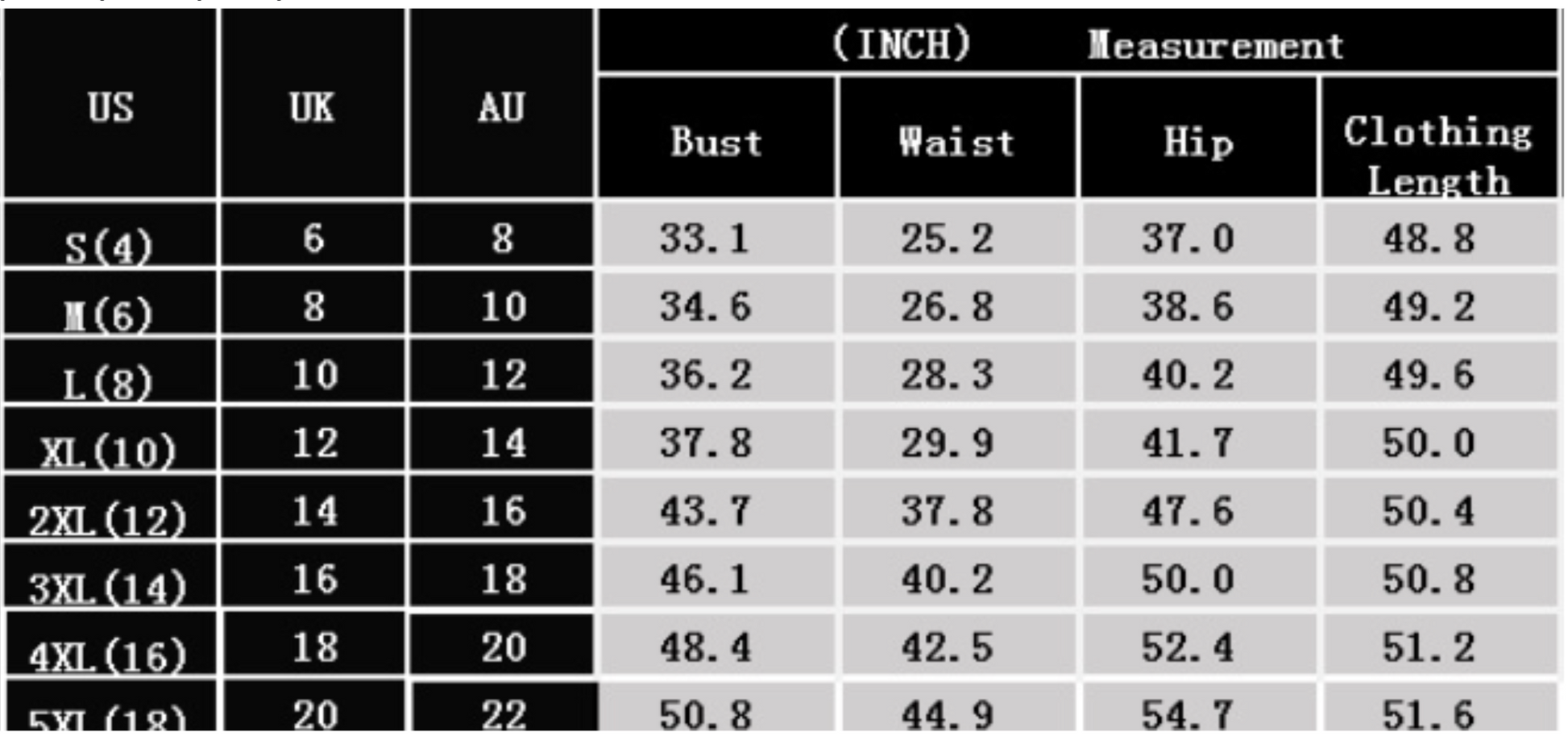 *Tabla de tallas estándar de mujeres de EE. UU. para su referencia. Consulta las tablas de tallas del producto al seleccionar tu talla para comparar. Utilice sus medidas únicas (cm o pulgadas) en la tabla de productos para encontrar su talla. Como las marcas individuales de ropa variarán en tamaño.