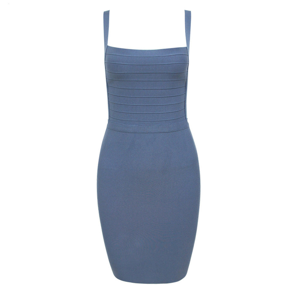 Experimente un lujo discreto con nuestro vestido bandage azul grisáceo, único en su tipo. Confeccionada para favorecer con una silueta ajustada por expertos, los tonos sutiles de esta suntuosa pieza agregarán sofisticación a su conjunto apto para cualquier ocasión. Atemporal pero llamativa, esta pieza atemporal seguramente sacará lo mejor de ti.