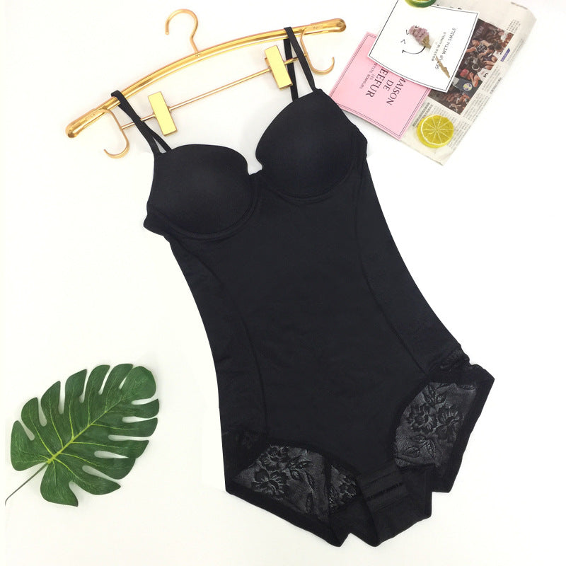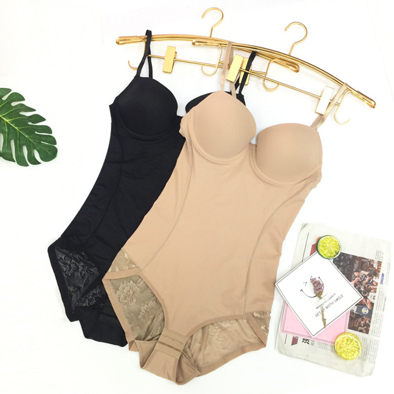 El body interior moldeador de cuerpo incluye sujetador y braguitas con cierre de encaje.