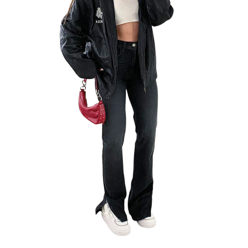 Ponte estos elegantes jeans con aberturas de cintura alta para una apariencia atrevida y atrevida. Muestra tu forma con una favorecedora cintura alta y haz movimientos con cómodas aberturas en ambas piernas.