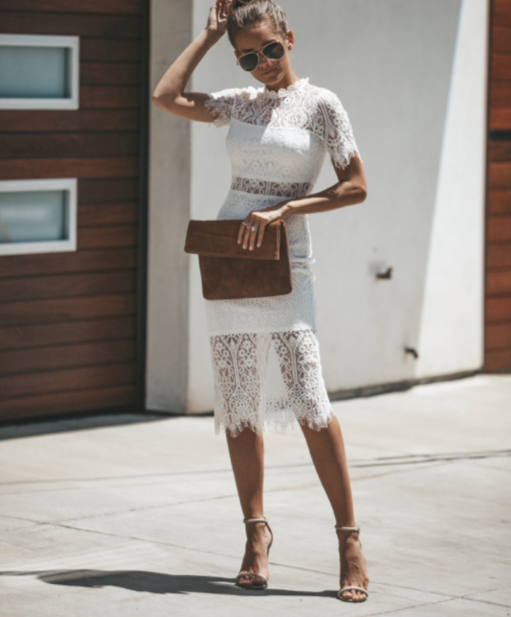 Elegante vestido de encaje de una pieza disponible en blanco o negro.