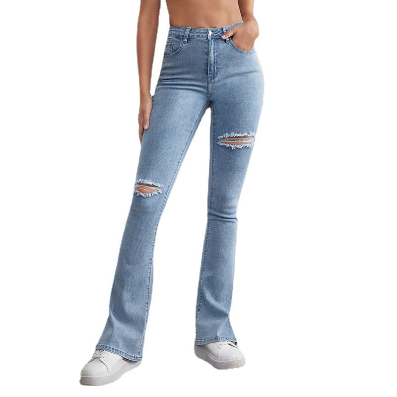 Vaqueros con abertura en el tobillo y cintura alta para mujer