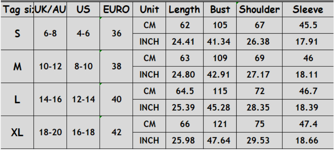 Tabla de tallas de conversión para mujeres de EE. UU.
