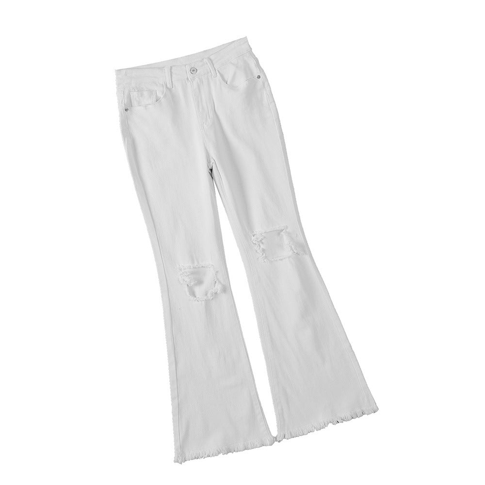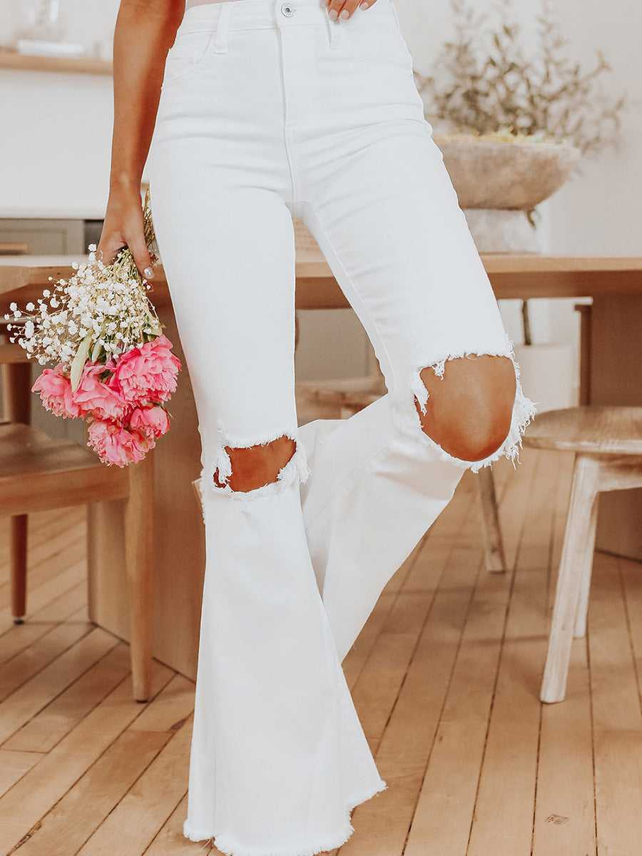 Vaqueros rasgados blancos con parte inferior de campana vintage para mujer