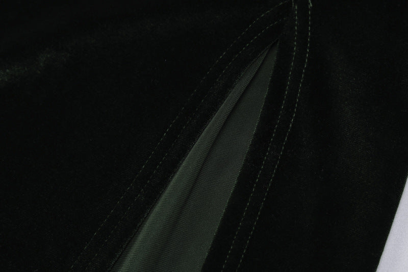 Green Velvet Gold Chain Halter Dress