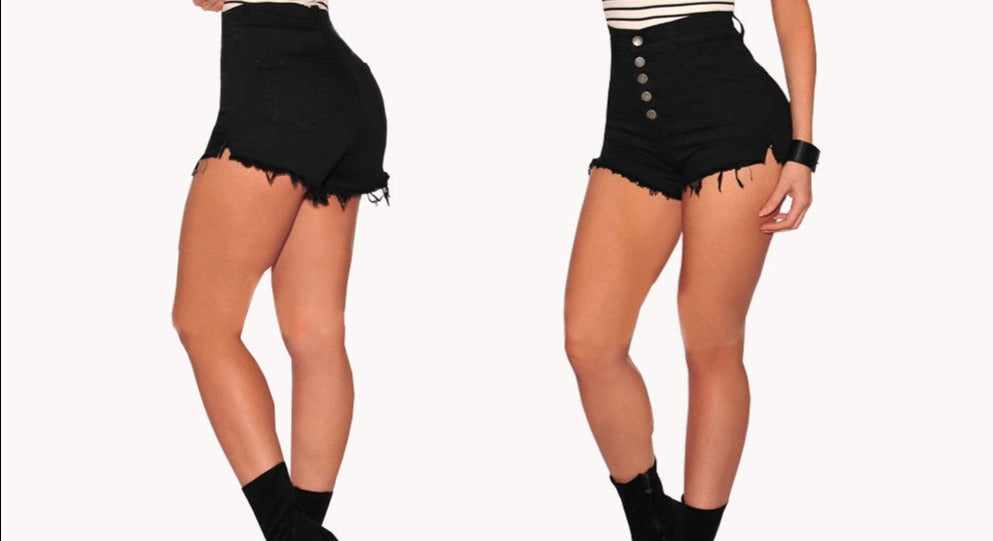 Women's Buttons and Tasseled Denim Shorts (Color Options)