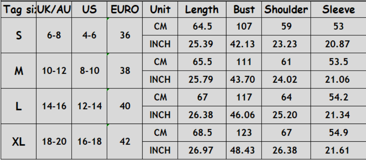 *Standard U.S. Women's Size Chart for your reference. Please see product size charts when selecting your size for comparison. Utilize your unique measurements (cm or in) in the product chart to find your size. As individual brands of apparel will vary in size.
