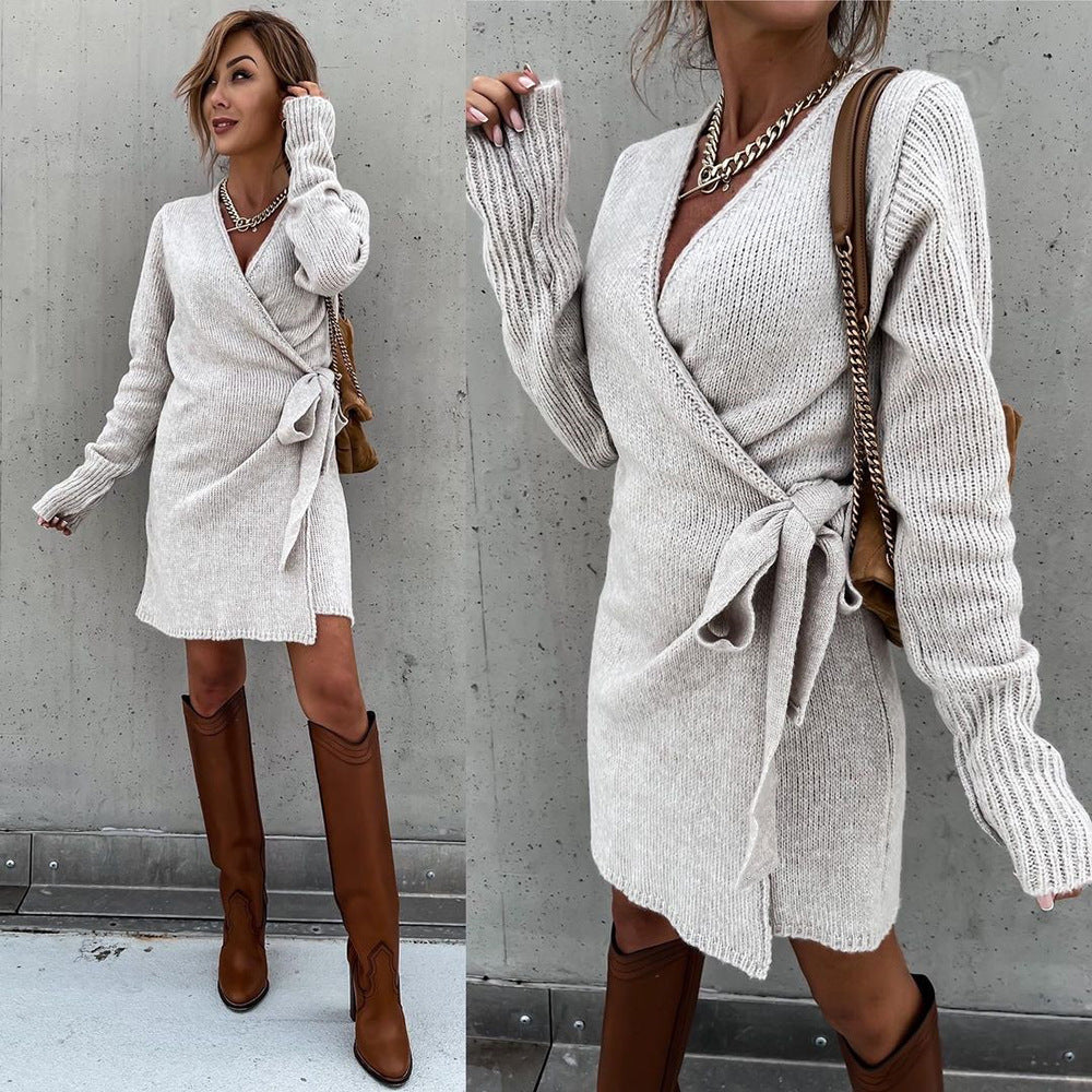 Wrapped and Knitted Cashmere Feel Sweater Dress