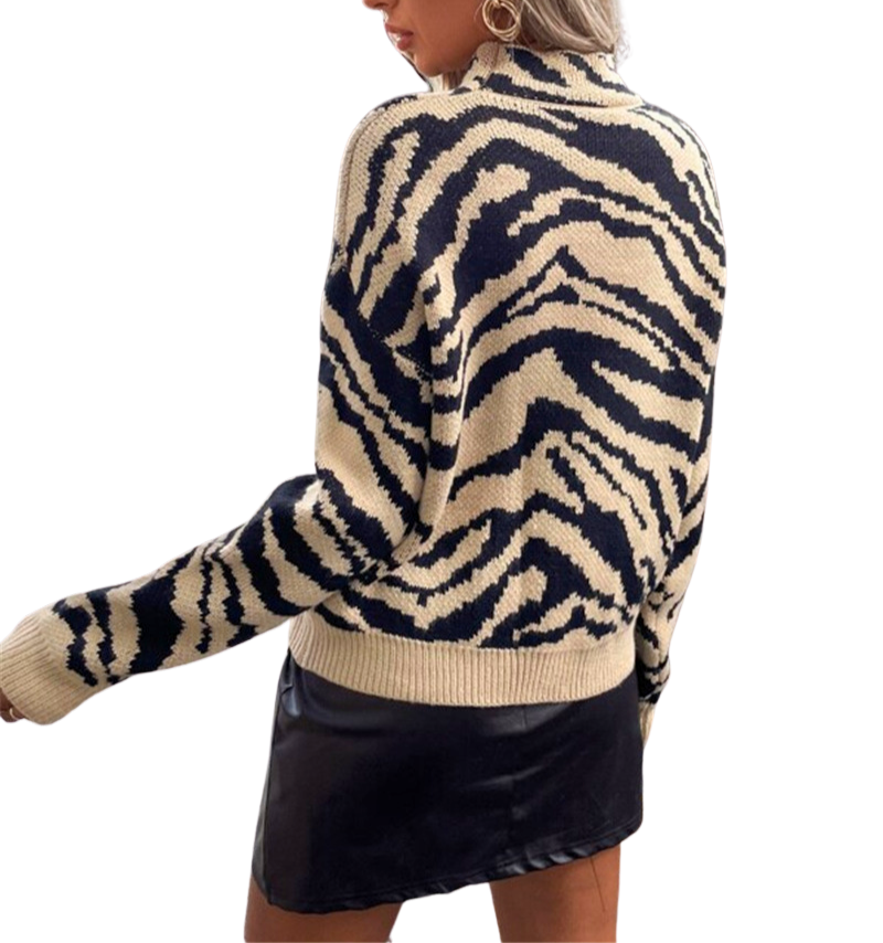 Stay warm and fashionable this season in this Zebra Pattern White or Tan Knitted Sweater. Crafted from soft, comfortable material, this cozy sweater showcases an eye-catching zebra pattern design that is sure to turn heads. Enjoy all-day comfort and chic style!